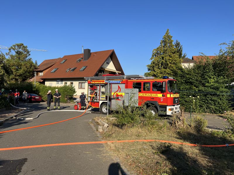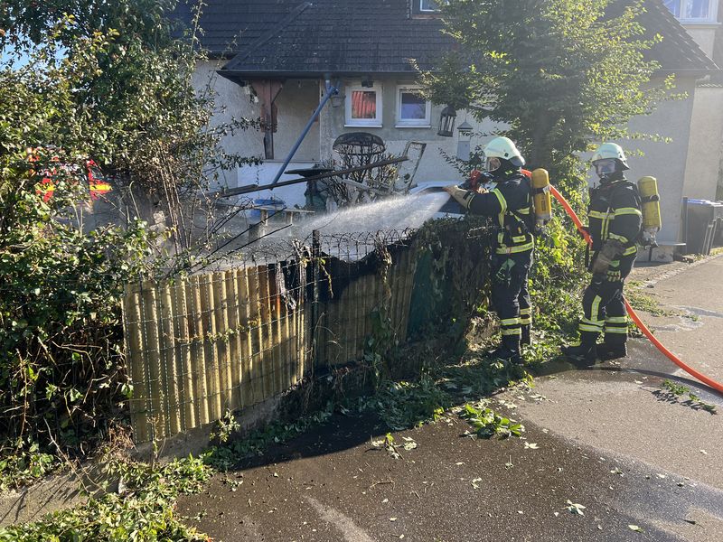 Beim Eintreffen der Feuerwehr hatten die Bewohner bereits Löschversuche mit dem Gartenschlauch unternommen, welche auch erfolgreich waren. Die Arbeit der Feuerwehr beschränkte sich daher auf Nachlöscharbeiten und der Suche nach Glutnestern. Zum Abschluss wurde die angrenzende Fahrbahn von der Feuerwehr gereinigt.