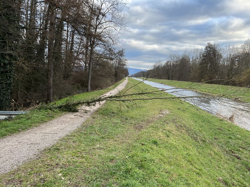 Der Polizei wurde ein umgestürzter Baum gemeldet, welcher auf dem Radweg an der Dreisam liegen sollte. Die Polizei forderte nach Erkundung die Feuerwehr zur Beseitung des Baum nach. Es wurde ein Arbeitasalarm für die Feuerwehr March ausgelöst.