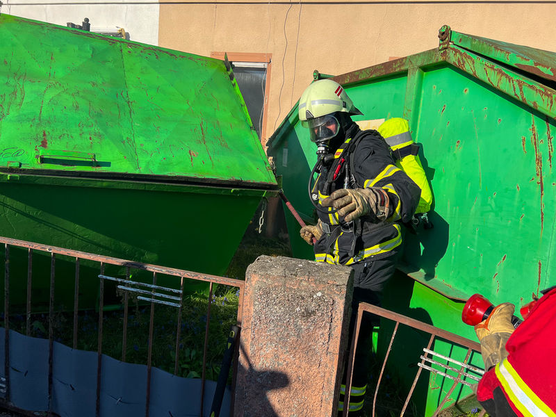 Beim Eintreffen der Feuerwehr konnte eine deutliche Rauchentwicklung aus dem Container festgestellt werden. An der Außenseite des Containers löste sich bereits die Lackierung durch die Wärmeentwicklung im Container. Die Feuerwehr entfernte das Schloss, mit dem der Container verschlossen war, und verschaffte sich damit Zugang zum Brandgut. Das Feuer wurde mit einem C-Rohr unter Atemschutz abgelöscht und mit der Wärmebildkamera kontrolliert. Die Einsatzstelle wurde an die Polizei übergeben und der Einsatz damit beendet.