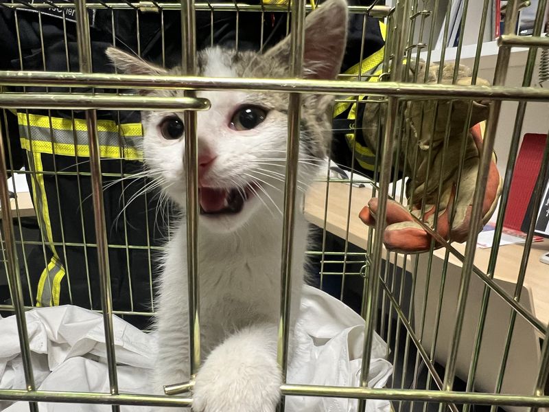 Katzenjunges wird von Feuerwehr ins Tierheim gebracht