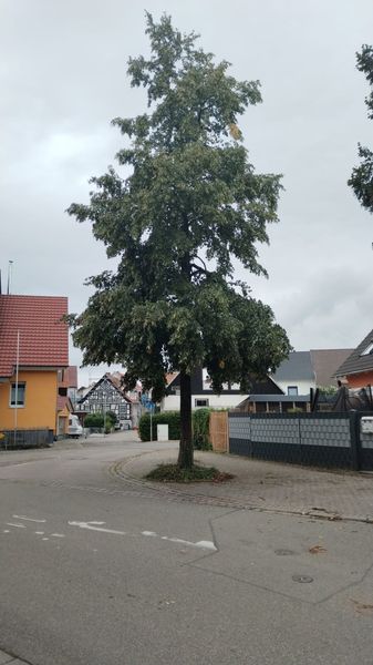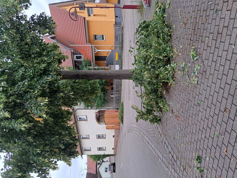 Bei einer knapp acht Meter hohe Linde in der Buchsweilerstraße, ist ein Ast in ca. vier Metern Höhe abgeknickt aber noch nicht zu Boden gegangen. Der Ast drohte auf den belebten Gehweg darunter zu fallen. Dies meldete ein Passant der Feuerwehr. Ein Alarm musste nicht ausgelöst werden, da die Feuerwehr auf einer Erkundungsfahrt in der Nähe unterwegs war.