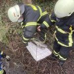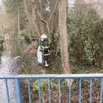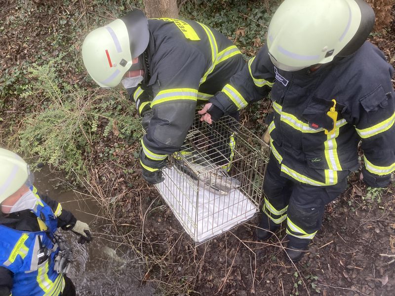 Nun half nur noch eins - der Sprung ins kalte Wasser. Das Tier konnte so, durch einen beherzten Griff eingefangen werden. Der Vogel wurde mit einer Decke in einer Transportbox sicher untergebracht. Nach Abklärung mit der Leitstelle konnte das Tier in die Tierklinik nach Freiburg Landwasser verbracht werden. Der Einsatz war nach der Rückkehr für die Feuerwehr beendet.