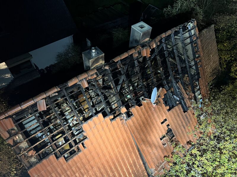 Mit der Drohne konnte sich die Einsatzleitung einen guten Überblick über die gesamte Einsatzstelle verschaffen. Es konnten auch die Bereiche erkundet werden, an die man mit der Drehleiter nicht beikam. Sehr hilfreich ist dabei auch die verbaute Wärmebildkamera. Die Messgruppe führte Luftmessungen im Umfeld des Einsatzortes durch, bei denen es keine Auffälligkeiten gab.