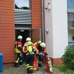Im Gebäude löst die Anlage einen sogenannten Räumungsalarm aus, welche alle Personen akustisch auffordert das Gebäude zu verlassen und sich am vorher definierten und gekennzeichneten Sammelplatz einzufinden, was auch geordnet und diszipliniert stattfand. Das Corpus delicti war von Rathaus-Mitarbeitern bereits in den Außenbereich zum Ausdampfen gebracht worden. Somit konnte sehr zeitnah die Lagemeldung: "Essen auf Herd, kein Feuer, keine weiteren Kräfte erforderlich..." abgesetzt werden; daher rückten auch keine weiteren Fahrzeuge mehr aus. Der betroffene Bereich im Dachgeschoss wurde quergelüftet, sodass die Feuerwehr ohne weitere Maßnahmen zu leisten wieder abrücken konnte.