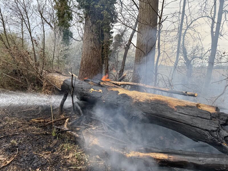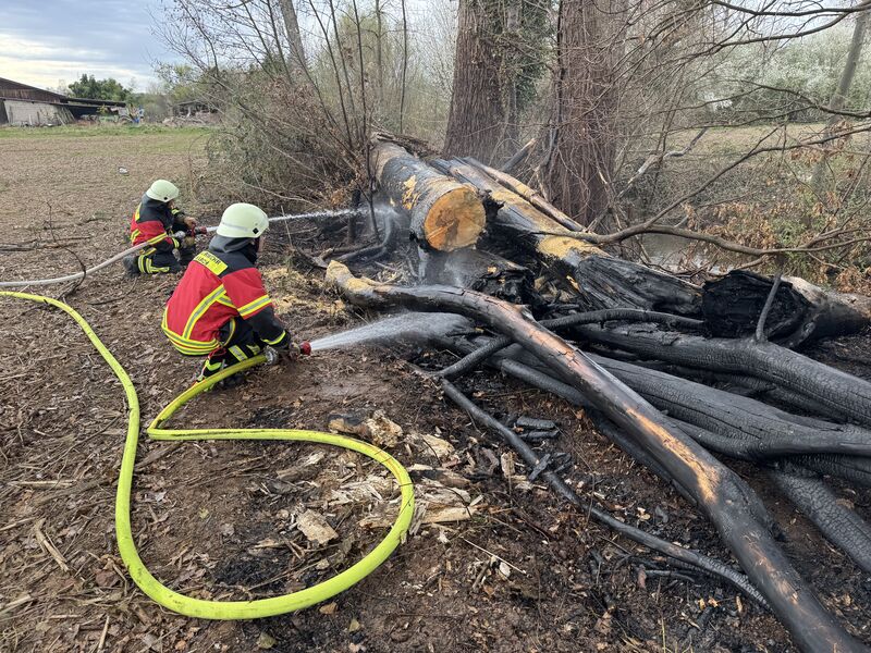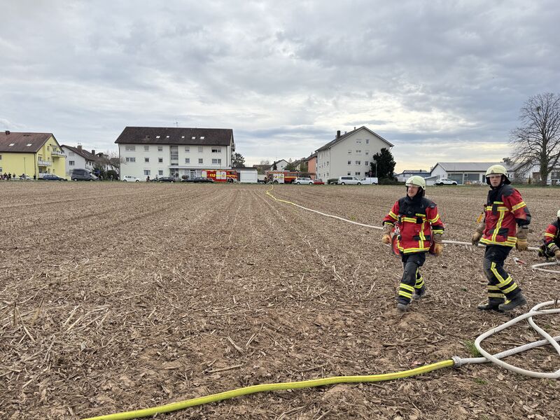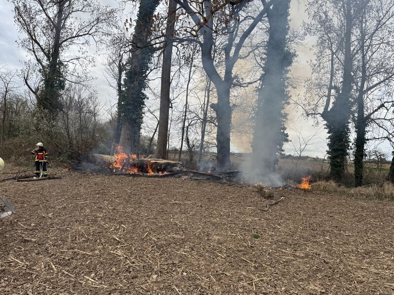 Ein Landwirt bemerkte auf seinem Hof Brandgeruch. Nachdem er sich auf die Suche der Ursache des Geruchs machte, bemerkte er in ca. 120 Metern Entfernung Feuerschein und eine Rauchentwicklung bei einem am Boden liegenden Baumstamm. Die Brandstelle befand sich zwischen dem Mühlbach und einem abgeernteten Feld. Der Jung-Landwirt schnappte sich Schaufel sowie Motorsäge und unternahm eigene Löschversuche, indem er die Brandausbreitung einzudämmen versuchte. Parallel wählte er mit seinem Handy die europaweite Notrufnummer 112. Die Integrierte Leitstelle in Freiburg alarmierte den diensthabenden Zug 2 der Feuerwehr March und verständigte die Polizei.