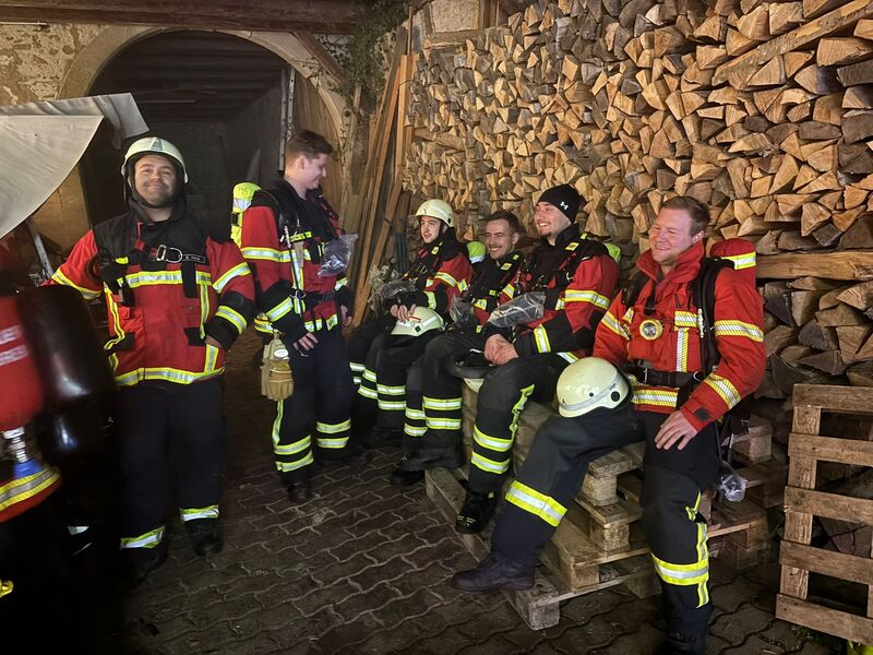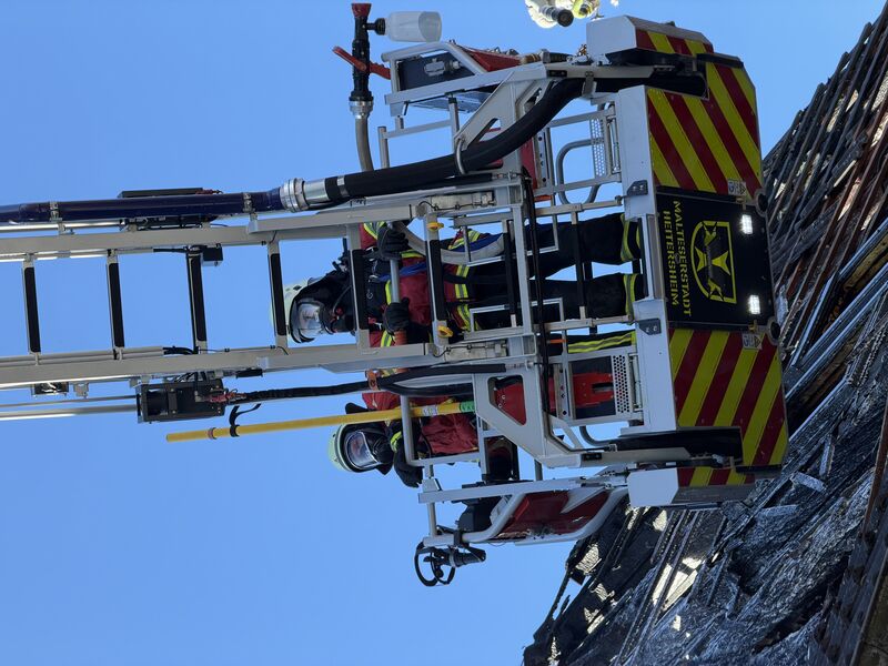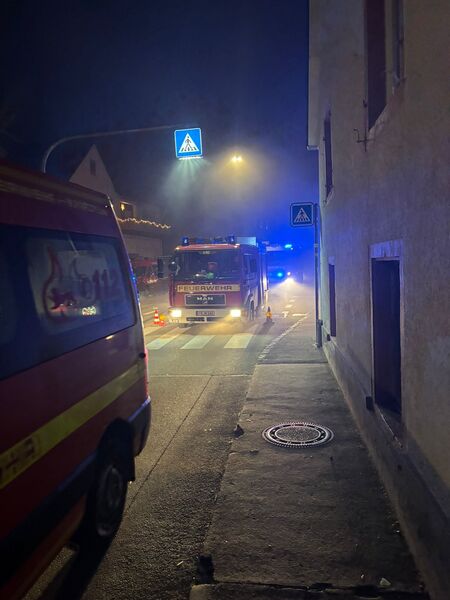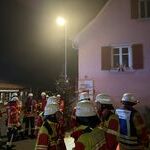 Die Löschmaßnahmen zeigten sich insgesamt, durch die verwinkelte Lage des Gebäudes in der Ortsmitte, recht schwierig und aufgrund des verbauten Dämmmaterials zwischen den Dachsparren als langwierig. Erschwerend kam noch hinzu, dass ein Teil der Decke im Obergeschoss als akut einsturzgefährdet eingestuft werden musste. Gegen neun Uhr fand dann auch ein Teileinsturz der Decke statt, weswegen ab diesem Zeitpunkt kein Innenangriff mehr möglich war. Glücklicherweise konnte die verstorbene Person, welche sich noch im Gebäude befand, zuvor durch Kräfte des Brandbekämpfungszugs geborgen und einem Bestatter übergeben werden.