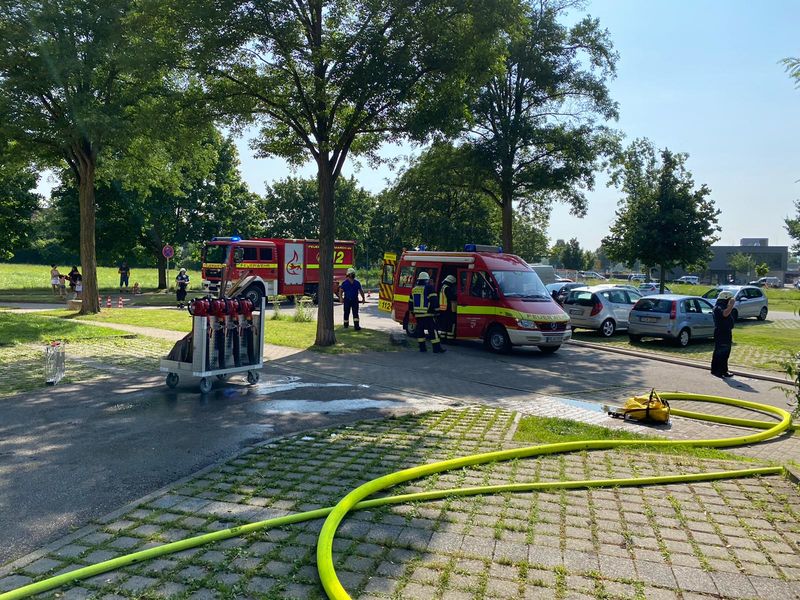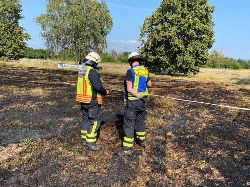 Im Zentralgebiet zwischen Buchheim und Hugstetten liegt noch der inzwischen stillgelegte alte Fußballplatz (90 x 60 Meter), der lediglich noch als Wiese seinen Zweck erfüllt. Diese Wiese wurde am Vortag von einem Landwirt gemäht und das Heu zum Trocknen in langen Schwaden auf dem gesamten Platz zusammengefasst. Kurz vor halb fünf fing das mittlerweile getrocknete Heu von Norden her Feuer und breitete sich rasant in Richtung Süden aus. Die Rauchsäule war bereits aus größerer Entfernung sichtbar. Zahlreiche Passanten wählten daraufhin den Feuer-Notruf 112. Für die Feuerwehr March wurde ein Gesamtwehralarm ausgelöst.