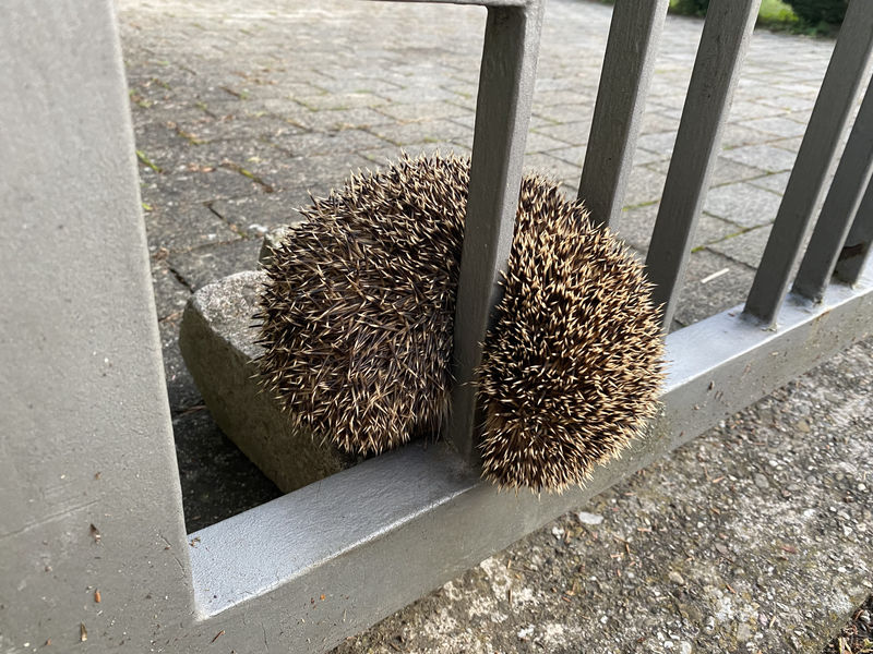 Von der Feuerwehr konnte der Igel in der beschriebenen Lage aufgefunden werden. Mittels Muskelkraft wurden die senkrechten Stäbe des Tores etwas aufgebogen, wodurch der Igel aus seiner misslichen Lage befreit werden konnte. Da an dem Tier keine offensichtlichen Verletzungen zu erkennen waren, wurde er im Garten ausgesetzt.