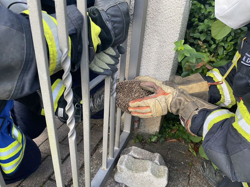 Eingeklemmter Igel benötigt Hilfe der Feuerwehr