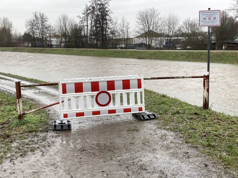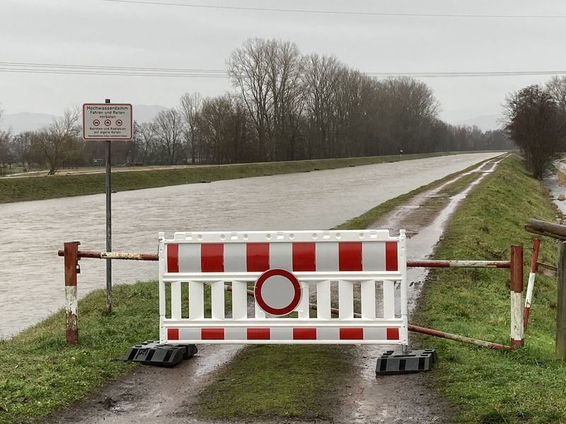 Aufgrund des Hochwassers (siehe Einsatz 2021-014) musste ein weiterer Dreisam-Radweg gesperrt werden. Denn zwischen Buchheim und Neuershausen, auf der linken Dreisam-Uferseite, existiert an der Wehranlage im Gewann "Hoh", etwa bei Dreisam-Kilometer 9,5, eine Deichabsenkung. Diese Absenkung wird bei einem Pegelstand von 165 cm überflutet. Dieser Wert wurde bereits um 08:45 Uhr erreicht. Für die Sperrung zuständig ist hier das Ordnungsamt der Gemeinde March, in dessen Auftrag der Einsatz dann abgewickelt wurde.