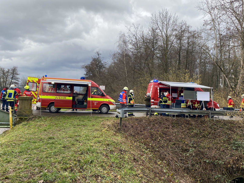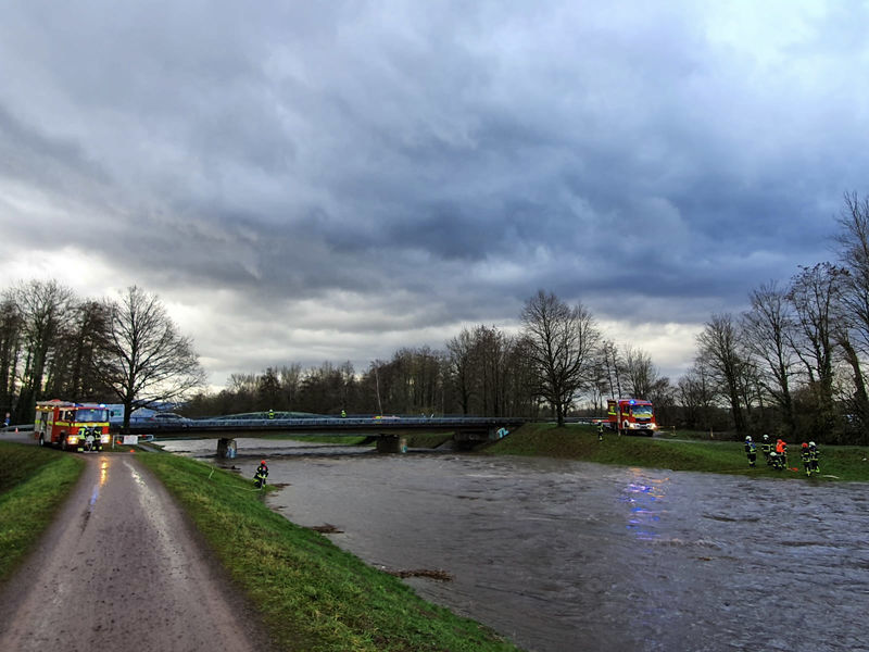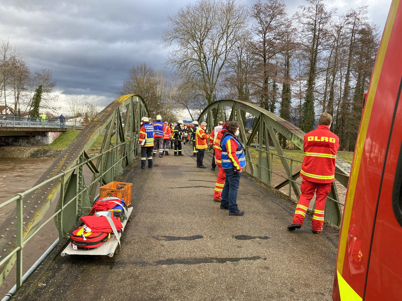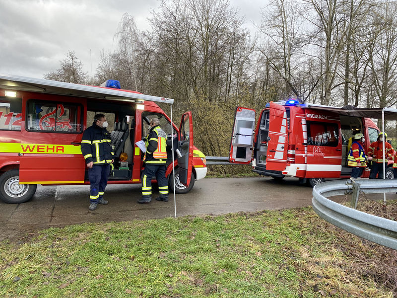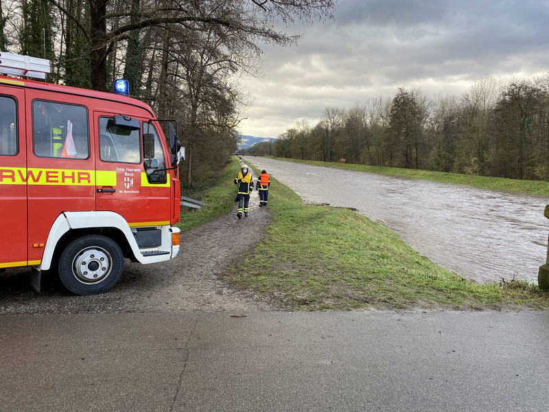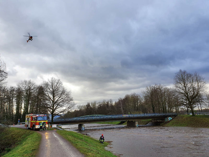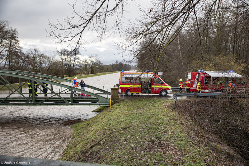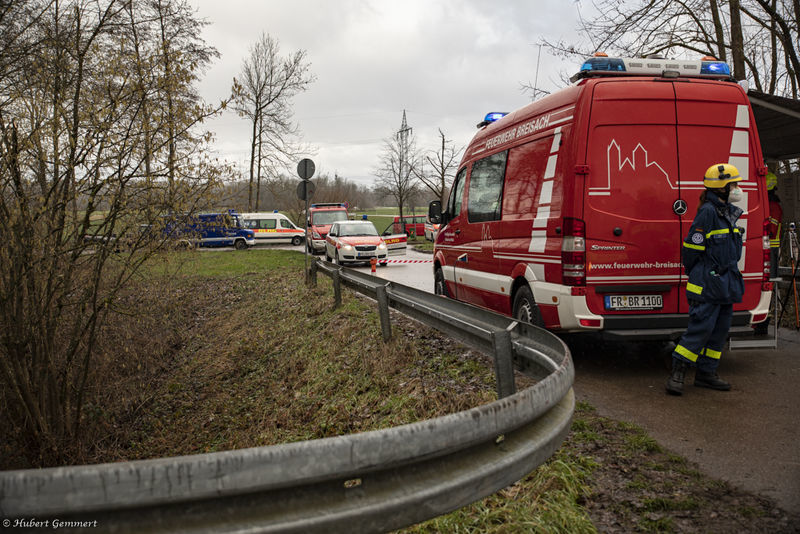 Um 09:11 Uhr meldete eine Passantin, dass im Bereich der Ochsenbrücke in Freiburg eine junge Frau in die Hochwasser führende Dreisam gefallen ist. Die junge Frau hat sich noch versucht an der dortigen Begrenzungsmauer festzuklammern, ist dann aber von der starken Strömung abgetrieben worden. Der betreffende Radweg wird bei einem Pegel-Stand von 110 cm bereits gesperrt, da er kurz darauf komplett überflutet wird. Zum Zeitpunkt des Unfalls, hatte die Dreisam einen Pegel von über 167 cm, so dass der Radweg gut einen halben Meter hoch überflutet gewesen sein musste. Die ersten Kräfte der Feuerwehr Freiburg wurden um 09:14 Uhr alarmiert und gingen an der Breisgauer Brücke in Lehen in Stellung. Bereits nach zehn Minuten zeichnete sich ab, dass ein Zugriff der Person auf Freiburger Gebiet vielleicht nicht mehr möglich sein könnte. Daher wurden um 09:24 die Feuerwehren Eichstetten und March mit einem IKZ-Alarm (IKZ = Interkommunale Zusammenarbeit) in den Einsatz gerufen.