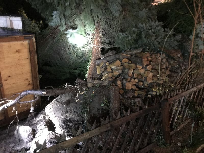 Sturmtief Diana legt 12-Meter-Tanne auf Dach
