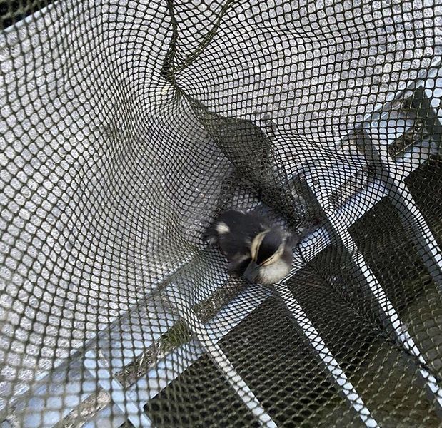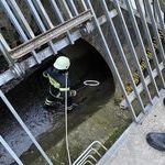 Entenküken in Abflussbauwerk eines Regenrückhaltebeckens gefangen