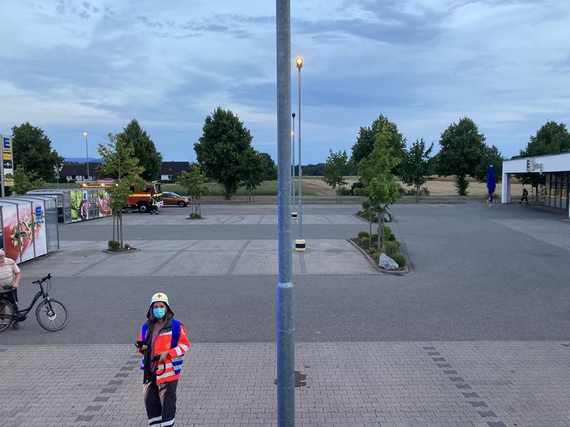 Diffuse Rauchentwicklung im Umfeld des EDEKA-Supermarktes veranlasst einen Passanten den Notruf zu wählen