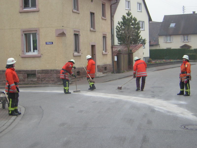 Die Feuerwehr musste an vielen Stellen des Gemeindegebietes größere Flächen abstreuen. Insgesamt waren die Ortsteile Buchheim, Hugstetten und Neuershausen betroffen. Mit acht Säcken Ölbinder konnte der ausgelaufene Kraftstoff aufgenommen werden.