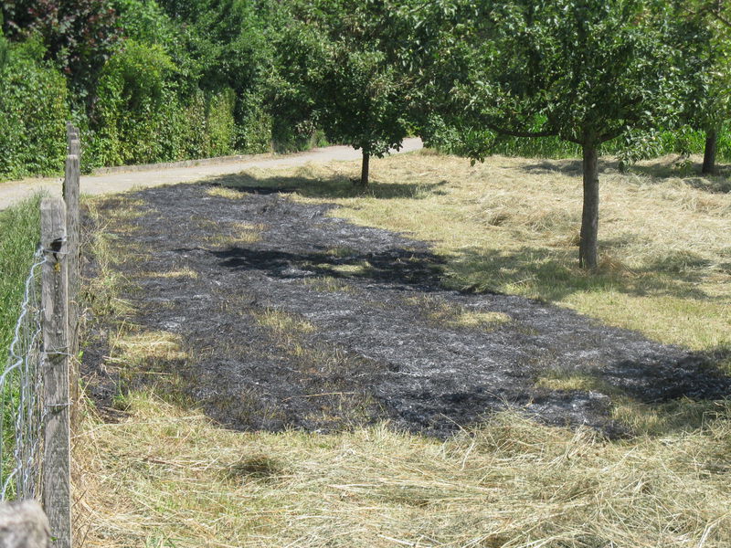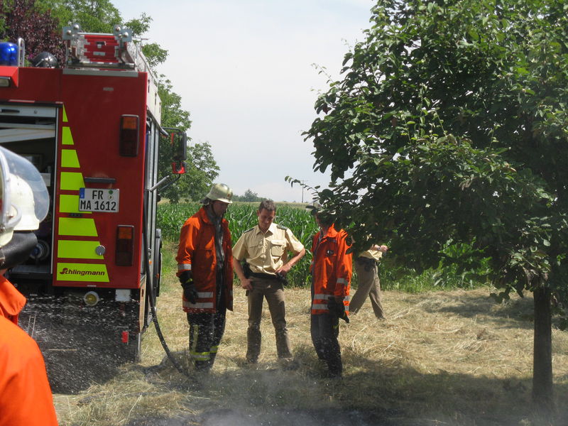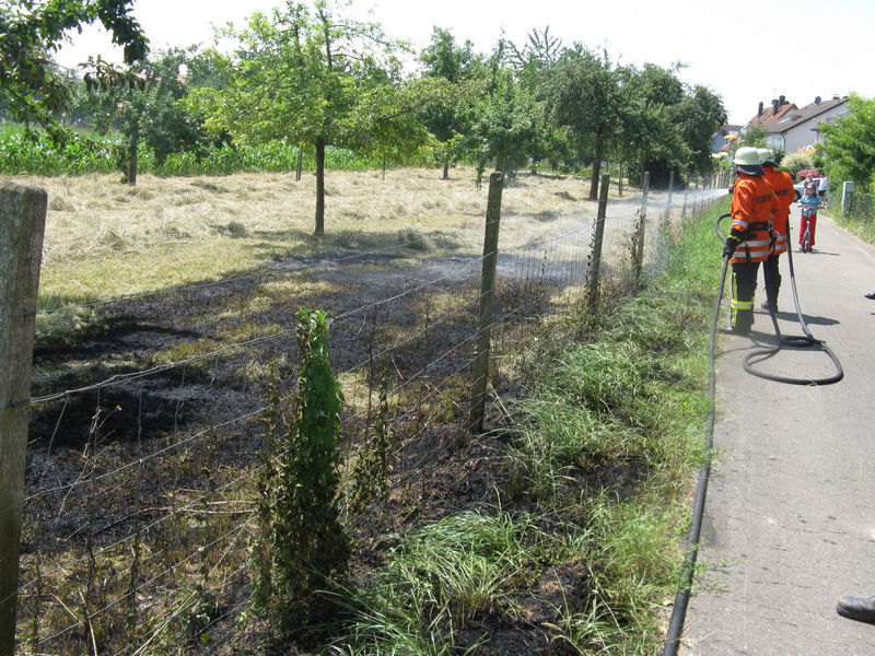 Aus nicht bekannter Ursache, brannte auf ca. 60 qm Fläche ein abgeerntetes Feld im Rebstuhlweg, hinter dem dortigen Spielplatz.