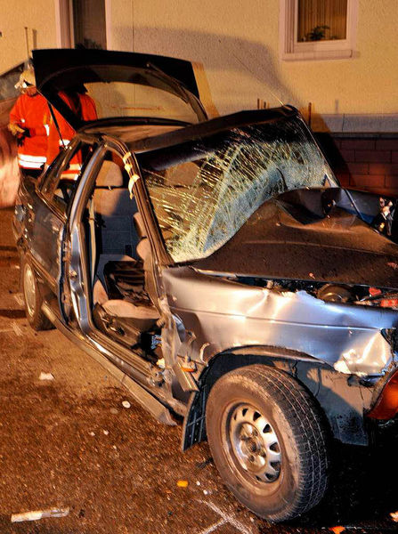 Fahrer rast mit überhöhter Geschwindigkeit gegen eine Mauer