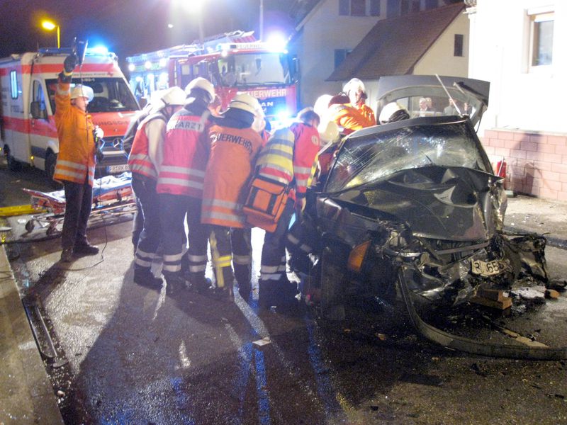 Als die Feuerwehr vor Ort eintraf und auf den schwerverletzten Fahrer stieß, wurde schnell deutlich, dass dessen Gesundheitszustand als äußerst kritisch beurteilt werden musste. Die Feuerwehr entschied sich sofort für eine Schnellrettung um keine weitere Zeit mit Stabilisierungsmaßnahmen zu verlieren, da eine unverzügliche notfallmedizinische Versorgung zwingend erforderlich war. Das Fahrzeug war sehr deformiert und die Türen ließen sich nicht mehr öffnen. Mit dem hydraulischem Rettungsgerät wurden daher beide Türen vollständig abgetrennt und damit ein Zugang geschaffen. Trotz der pfeilschnellen Rettung und sofortigen Übergabe an den Notarzt, verstarb der 19-jährige Fahrer später in einem Freiburger Klinikum an den schweren Unfallfolgen.