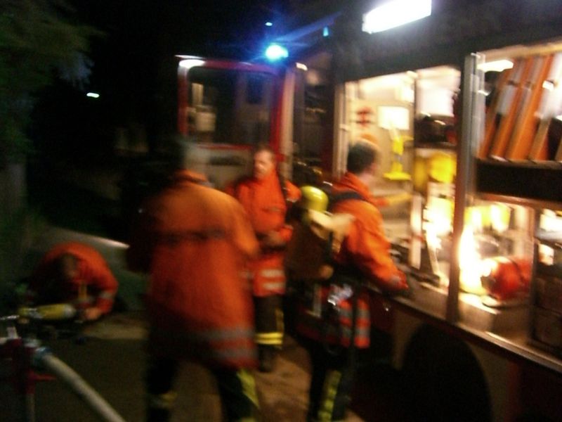 Die Ersterkundung der Feuerwehr ergab keinen Vollbrand und eine überschaubare Lage. Beherzte Anwohner versuchten den Brand noch mit Gartenschläuchen unter Kontrolle zu halten und konnten eine weitere Brandausbreitung verzögern. Ebenso schafften sie es, einen direkt vom Brand betroffenen Lieferwagen in Sicherheit zu bringen.