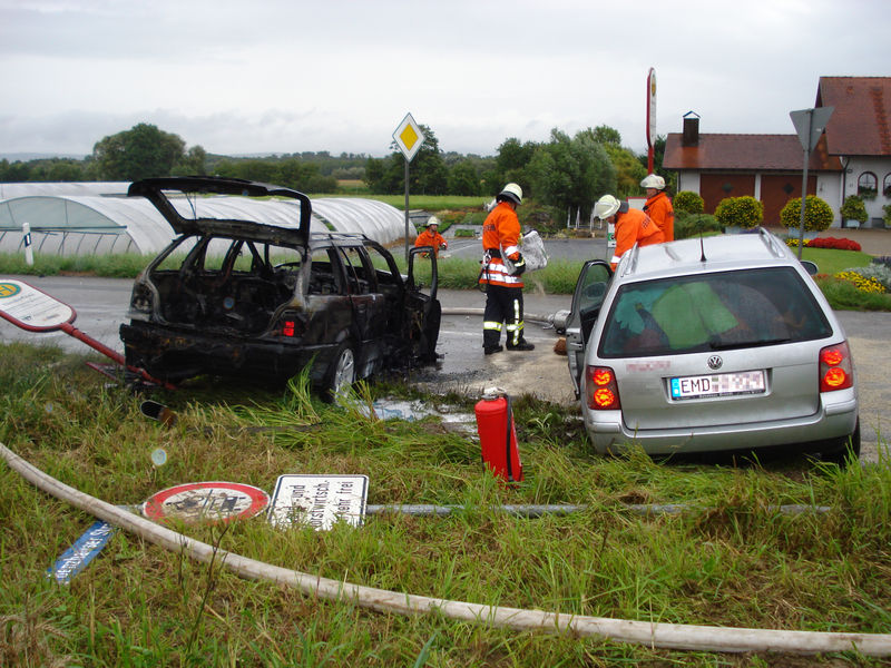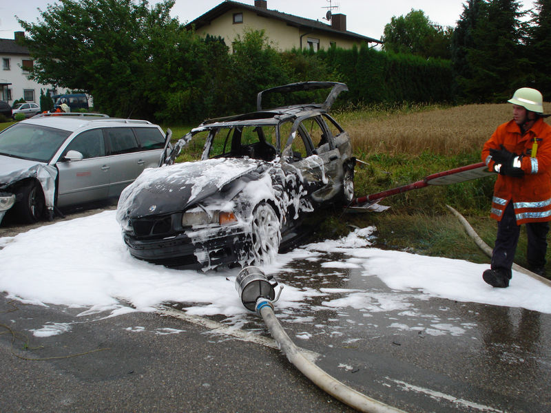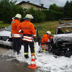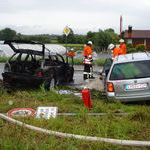 Nach Verkehrsunfall, Fahrzeug im Vollbrand