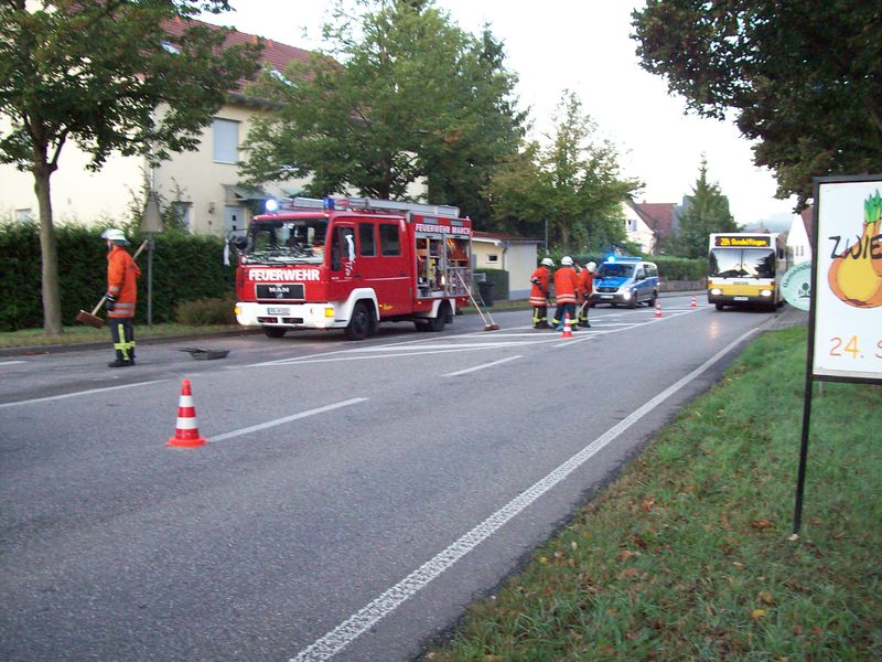 Die beiden Fahrer wurden leicht verletzt, der Sachschaden dürfte knapp fünfstellig sein. Die Feuerwehr war mit zwei Fahrzeugen und elf Kräften, der Rettungsdienst aus Freiburg mit vier Kräften und zwei Fahrzeugen im Einsatz. Es kam zu Behidnerungen im Berufsverkehr. Über die Dauer der Aufräumarbeiten wurde der Verkehr einspurig an der Umfallstelle vorbeigeführt.