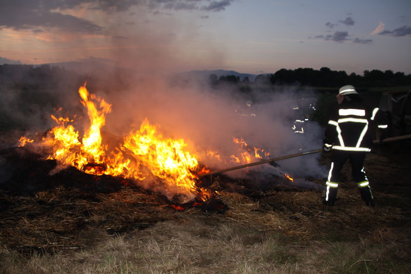 In der Bottinger Straße ist abermals Stroh in Brand geraten: Nur unweit der Stelle, an der am frühen Samstagmorgen bereits ein Strohhaufen brannte (Gewann Kapellenacker), musste die Feuerwehr nun beim Eintreffen feststellen, dass diesmal gleich zehn Strohballen im Vollbrand standen.