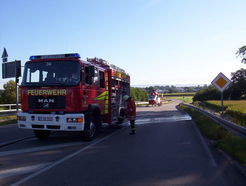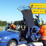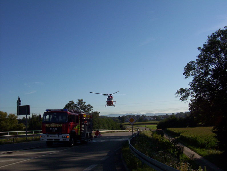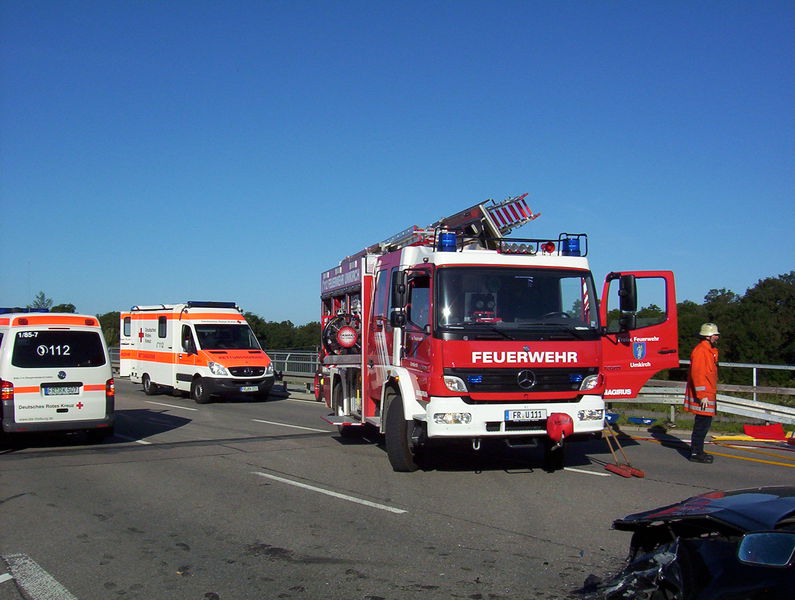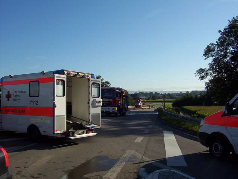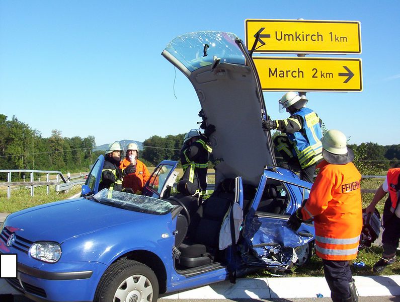 In einem der kollidierten Pkw wurde die Fahrerin schwer verletzt und eingeklemmt. Aufgrund der Schwere der Verletzungen ordnete der Notarzt bei dieser Patientin eine sogenannte „patientengerechte Rettung“ an. Somit musste mit hydraulischem Rettungsgerät die Fahrertüre, sowie das Dach abgenommen -- bzw. zurückgeklappt -- werden. Bei dieser Verunfallten, wie auch bei den fünf weiteren Verletzten, wurde der Rettungsdienst durch Einsatzkräfte der Feuerwehren March und Umkirch unterstützt. Zudem richteten die Feuerwehren auf Anordnung der Polizei die Vollsperrungen in den Bereichen der Zufahrten zur Unfallstelle ein, betreuten diese und gaben den zahlreichen ortsunkundigen Fahrzeugführerinnen und -lenkern geduldig detaillierte Auskunft über die Umfahrungsstrecken.