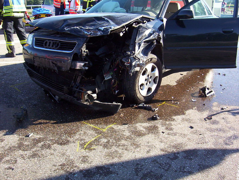 Nach Verkehrsunfall drei Personen verletzt, eine Person eingeklemmt