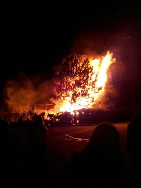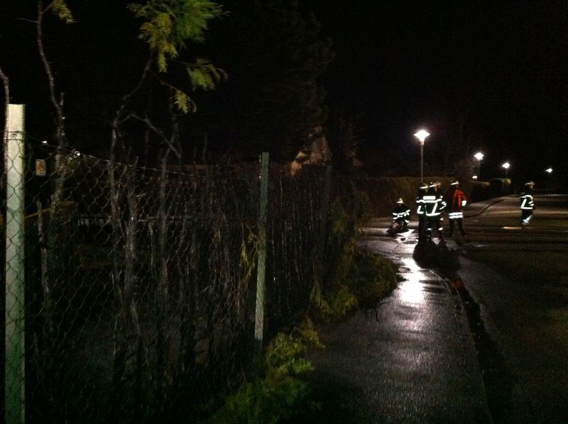 Es wurde umgehend ein Löscheinsatz unter Atemschutz von zwei Seiten aufgebaut um die Flammen einzudämmen. Insbesondere die Zweigspitzen von Thujas, aber auch die von Kiefernzweigen, enhalten leichtentzündliche ätherische Öle die zu einer äußerst schnellen Brandausbreitung führen können und im aktuellen Fall auch führten. Innerhalb von kürzester Zeit stand die knapp 50 Meter lange Hecke im Vollbrand. Die Strahlungsenergie brachte sämtliche Gegenstände im Umkreis von ca. fünf Metern zum Schmelzen.