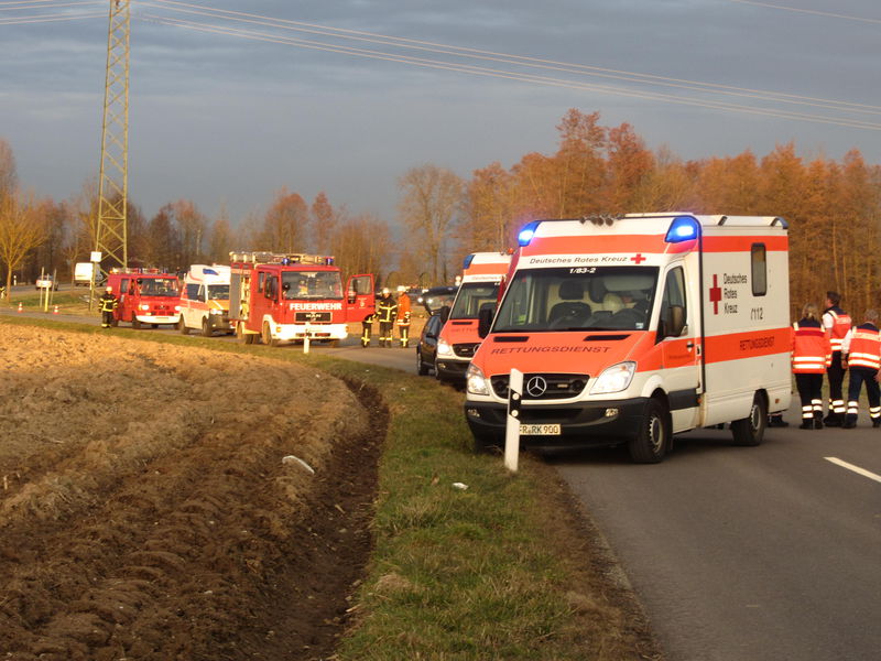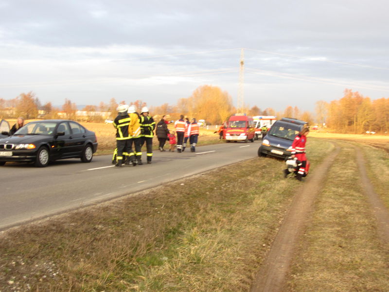 Eine 32-jährige Mutter war mit ihren drei kleinen Kindern (0 bis 4 Jahre) von Gottenheim kommend auf der L187 unterwegs. Ohne Fremdeinwirkung kam sie in einem kurvigen Abschnitt auf die Gegenfahrbahn. Beim Versuch gegenzulenken geriet sie so unglücklich an den Fahrbahnrand, dass sich das Fahrzeug überschlug und auf einer Länge von ca. 15 Metern, und auf der Seite liegend, die Fahrbahn entlang rutschte. Schließlich kam das Unfallfahrzeug auf der eigenen Fahrbahnseite zum Stillstand. Ein ihr entgegen kommendes Fahrzeug konnte diesen Vorgang aus sicherem Abstand beobachten. Da bei der Notruf-Meldung nur bekannt war, dass es sich um mehrere Personen im Fahrzeug handelte ohne Kenntnis ob und wie viele davon eingeklemmt sind, wurde eine große Rettungskette in Gang gesetzt.