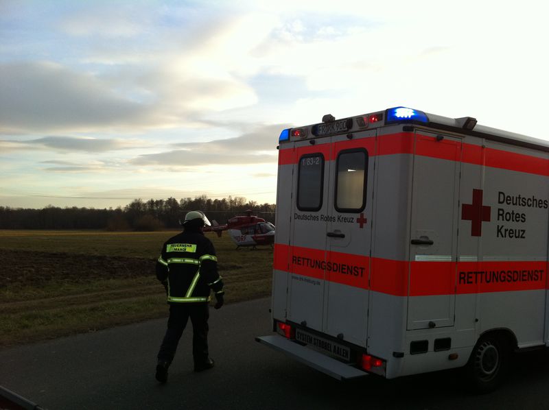 Nach Alarm-Stichwort: H3, Person in Zwangslage mittel, drei Kleinkinder, eine erwachsene Person nach PKW-Überschlag nur leicht verletzt