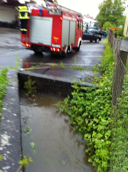 Der Nebenarm des Holzhauser Dorfbachs verläuft im Bereich eines gewerblichen Anwesens (ehemals Brotweber) unterirdisch. Am Eingang der Dohle befindet sich ein Schmutzgitter welches stark verstopft war. Dadurch staute sich der Bach auf und lief über. An dieser Stelle münden auch zwei Gullis des Anwesens in den Bach. Somit drückte das aufgestaute Wasser nun aus diesen Gullis heraus und überflutete eine Fläche von ca. 200 qm einige Zentimeter hoch. Die Feuerwehr entfernte den Unrat am Schmutzgitter mit Einreißhaken, sodass der Abfluss des Baches wieder gewährleistet war.