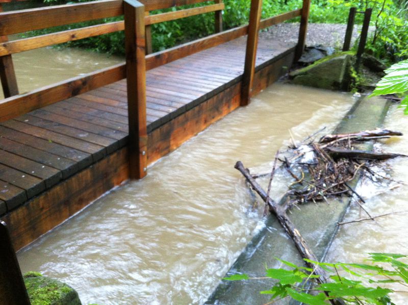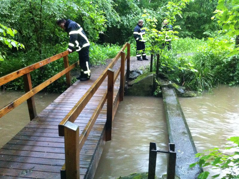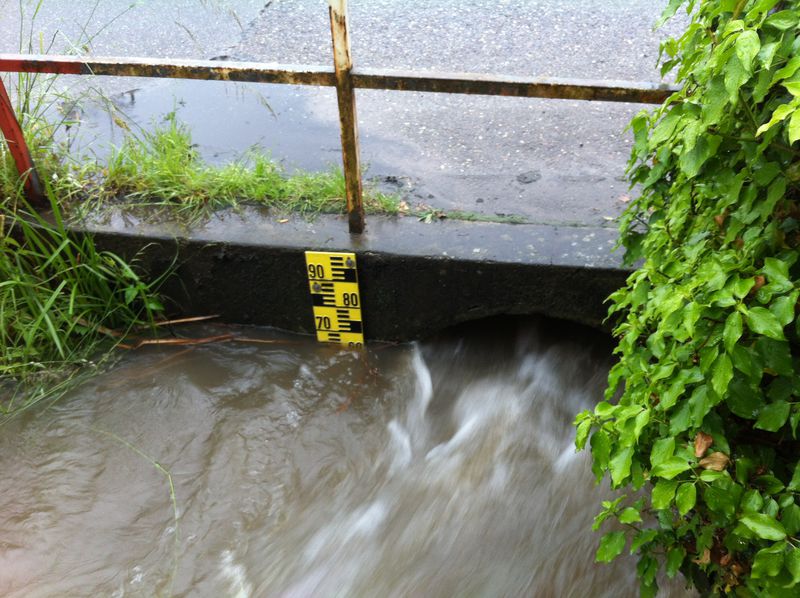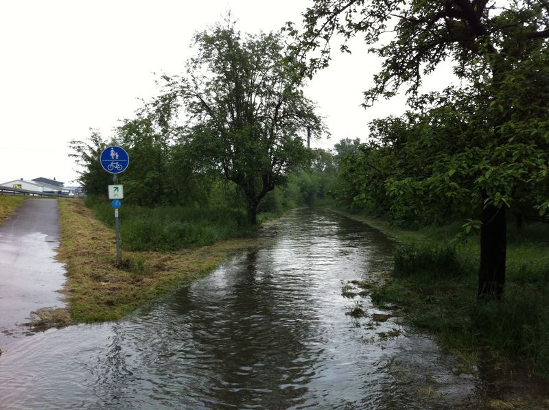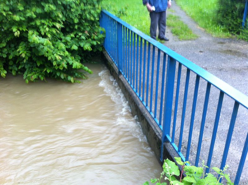 Aufgrund der Wetterlage wurden an den Bächen noch einige noralgische Punkte kontrolliert. Die Dreisam hat seit dem 01.06.2013 um 06.45 Uhr einen Pegel von über 120 cm und führte damit Hochwasser. Der Scheitelpunkt wurde um 14.00 Uhr mit 139,3 cm erreicht und ging ab da mehr und mehr zurück. Gegen 08:30 Uhr am nächsten Tag sank der Pegel wieder unter die Marke von 120 cm.