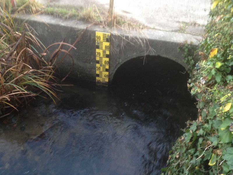 Verstopfte Bach-Dohle lässt Bach überlaufen