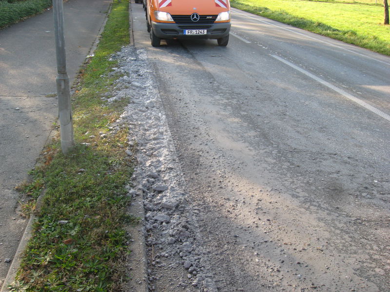 Ein mit Beton beladener LKW befuhr die L116 von Umkirch kommend in Richtung March-Buchheim. Dabei verlor der LKW einen Teil seiner Ladung in Form von flüssigem Beton. Dieser begann nun schon auszuhärten und verschmutze die Fahrbahn von der Gemarkungsgrenze (Höhe B31 a) bis zum Bahnübergang Umkircher Straße. Dieser Vorfall wurde von der Leitstelle telefonisch dem Bauhof gemeldet. Dort beschäftigte Feuerwehrangehörigen übernahmen dann diesen Einsatz.
