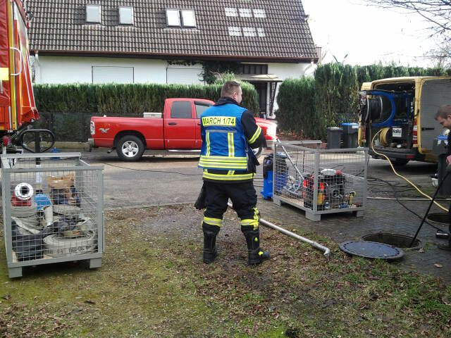 Mit Wassersauger und Tauchpumpe wurde die Wassernot beseitigt. Im Verlauf des Einsatzes stellte sich jedoch heraus, dass das Wasser immer wieder von außen nachdrückte, was offenbar durch einen defekten Regenwasserschacht herrührte. Daher wurde ein Rohrreiniger zur Einsatzstelle nachgefordert.