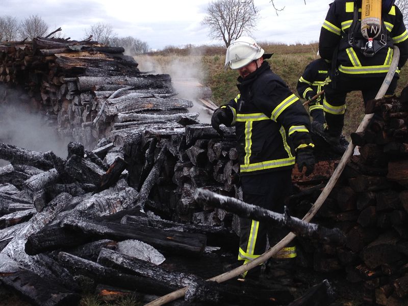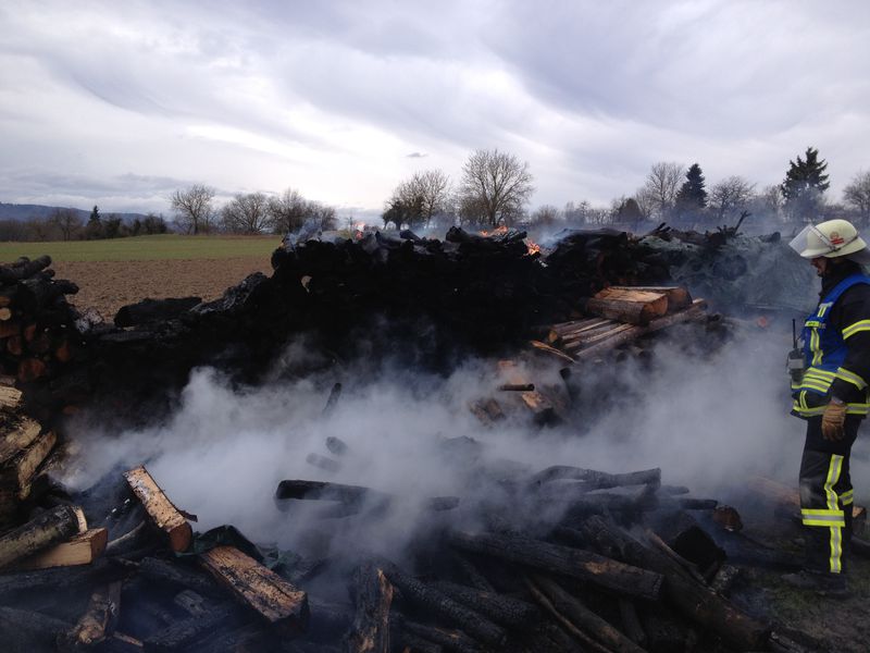 40 Ster großer Holzstapel im Außenbereich in Brand geraten