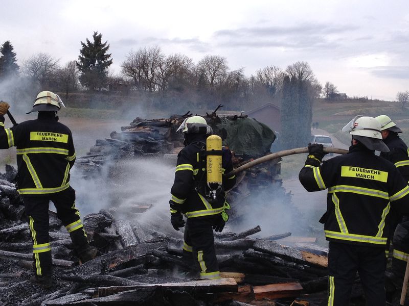 Ein 40 Ster großer Brennholzstapel, der an einem Wirtschaftsweg zwischen den Gewannen "Vor den neuen Reben" und "Siegental" auf Gemarkung Neuershausen gelagert war, ist aus unbekannter Ursache in Brand geraten. Die Brandstelle lag 650 Meter nord-nord-östlich des Neuershauser Friedhofs, am Hangfuß des Nimbergs. Eine Passantin, die mit ihrem Hund spazieren war, bemerkte den Brand und meldete ihn dem Besitzer des Holzstapels, der wiederum die Feuerwehr alarmierte. Dies zog einen Alarm für die Arbeitsschleife nach sich.