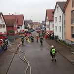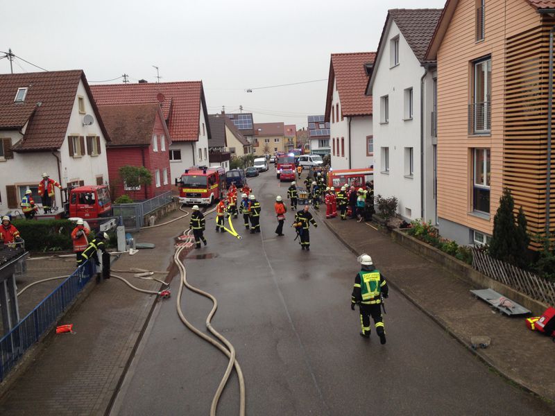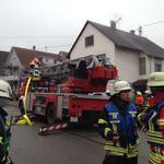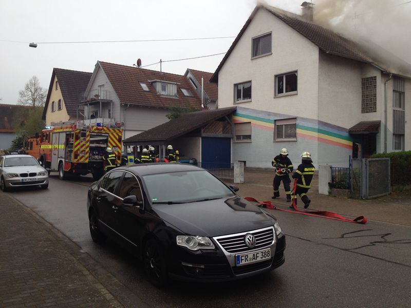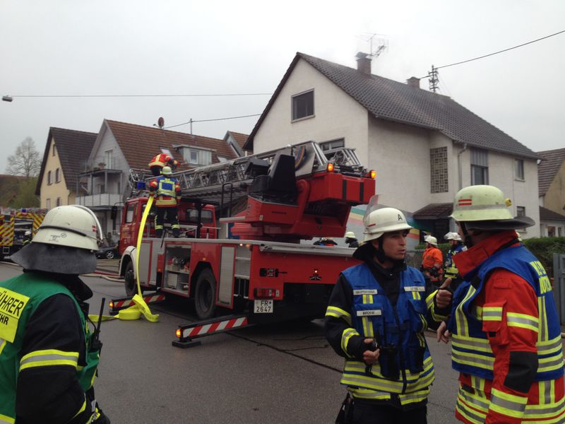 In der Hugstetter Dorfstraße kam es in der Dachgeschosswohnung eines Mehrfamilienwohngebäudes zu einem Wohnungsbrand, in dessen folge eine Küche vollständig ausbrannte. Da sich zum Zeitpunkt des Brandausbruchs keine Personen im Gebäude befanden, wurde der Notruf von Anwohnern abgesetzt. Vom Dach war eine mittelstarke Rauchentwicklung weithin sichtbar. Beim Eintreffen der Feuerwehr hatten die Flammen bereits auf den Dachstock übergegriffen; damit lag bereits ein geschlossener Dachstuhlbrand vor und es drohte innerhalb von recht kurzer Zeit die Durchzündung. Daher wurde unverzüglich die Feuerwehr Bötzingen mit der Drehleiter zur Einsatzstelle nachgefordert.