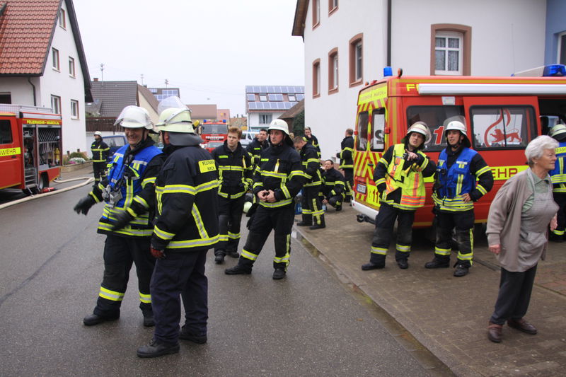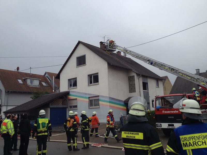 Die Wohnungen im Erd- und Obergeschoss blieben nahezu unversehrt und sind weiterhin bewohnbar, die Brandraumwohnung brannte teilweise aus und wird daher längere Zeit nicht bewohnbar sein (im Artikel der Badischen Zeitung ist dies leider falsch abgedruckt). Personen wurden nicht verletzt. Das Gebäude bleibt auch nach dem Feuerwehreinsatz komplett stromlos, da sämtliche Leitungen im Dach geschmolzen waren. Kurz vor Einsatzende wurden diese geschmolzenen Leitungen noch vom angerückten Energieversorger in Augenschein genommen. Der Sachschaden wird auf ca. 80.000 bis 100.000 Euro beziffert. Die Brandursache ging von der Küche aus, der Grund ist bisher noch nicht bekannt. Die Feuerwehren waren mit 43 Kräften und acht Fahrzeugen vor Ort; der Rettungsdienst mit Notarzt und DRK Ortsverein March mit 11 Kräften, die Polizeien (Schutz- und Kriminalpolizei) mit ebenso ca. 10 Kräften. Der Stv. Kreisbrandmeister Weber aus Breisach, sowie Marchs Bürgermeister Hügele machten sich vor Ort ein Bild der Lage.