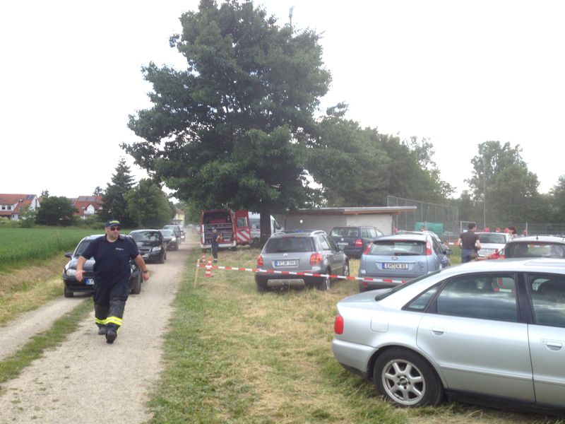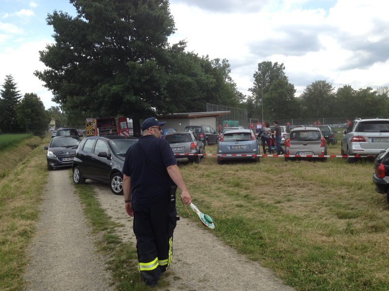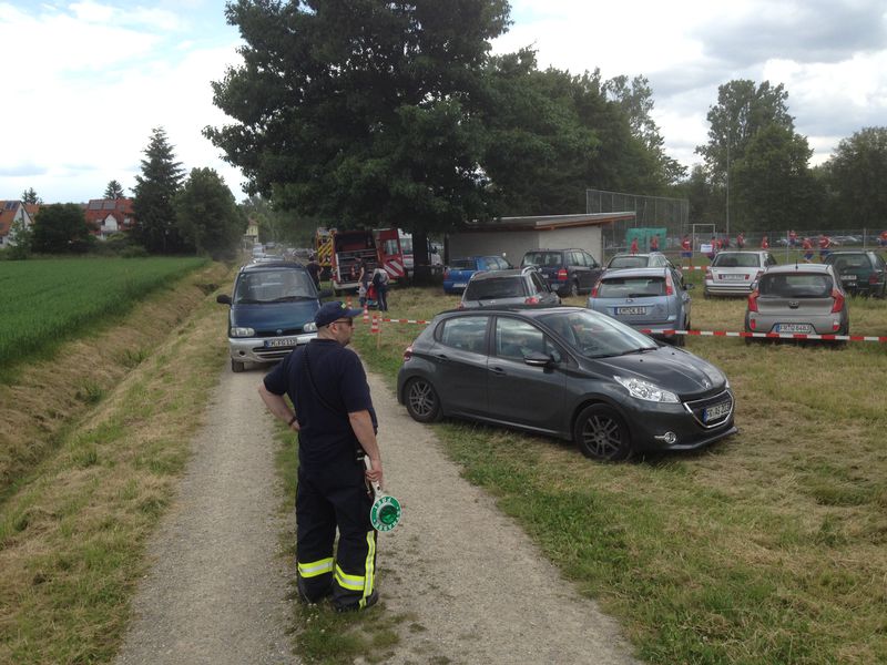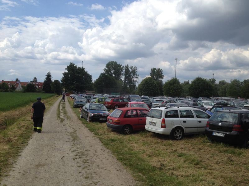 Parkplatzdienst anlässlich der Bezirkspokalendspiele im Holzhauser Neufeld-Stadion, mit über 3.000 Besuchern und über 500 PKWs