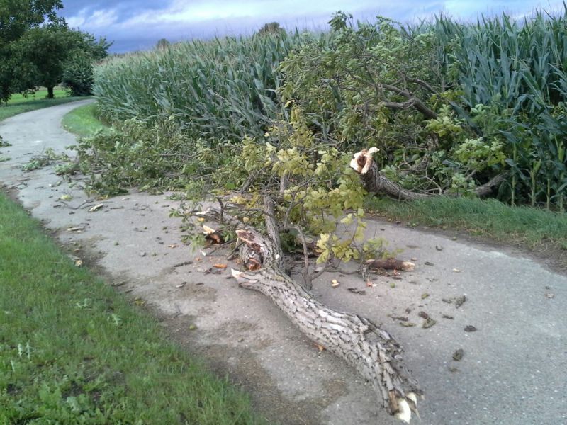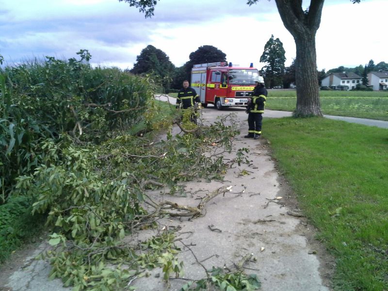 Mit Spitzenböen von 73 km/h herrschte an diesem Mittwoch im Gemeindegebiet March Windstärke acht. Mehrere Äste eines Nussbaumes im Bereich Kapellenweg in Neuershausen, hielten der Windlast nicht stand, brachen ab und blockierten einen Wirtschaftsweg. Der Ortsvorsteher informierte die Feuerwehr telefonisch darüber. Es wurde kein Alarm ausgelöst.