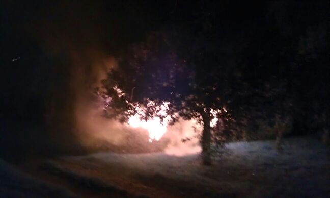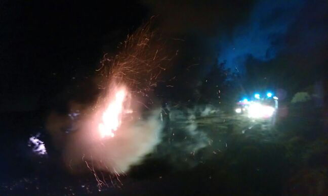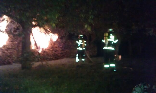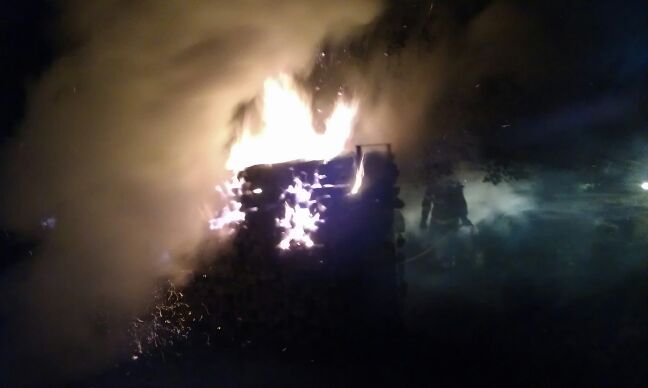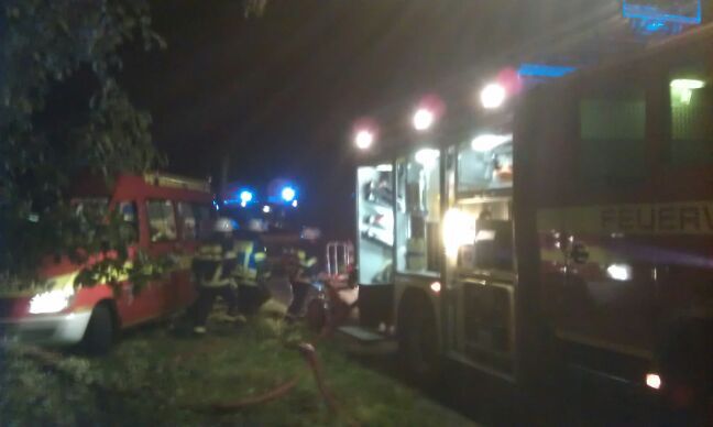 Beim Eintreffen stand der fast 20 Meter lange Holzstapel an vier verschiedenen Stellen in Brand und imponierte mit hohen Flammen, die in Begriff waren auf zwei direkt benachbarte Bäume überzugreifen. Mit einem C-Rohr und ca. 3.000 Litern Löschwasser wurde dem Feuer zu Leibe gerückt. Auch die vor Ort eingetroffene Polizei konnte keine Erkenntnisse für eine Selbstentzündung feststellen.
