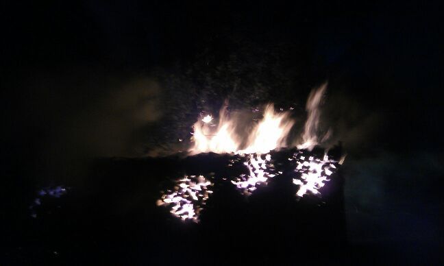 Größerer Holzstapel stand in Flammen