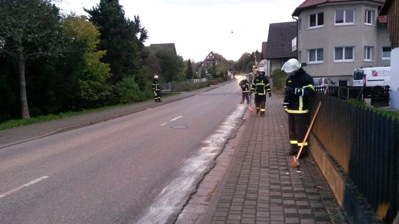 Ein bisher unbekanntes Fahrzeug hatte auf dem Weg von Vörstetten/Reute kommend, durch March, in Richtung Bötzingen, eine beachtliche Menge Öl verloren. Daher zog sich eine deutliche Spur durch die March-Orte Holzhausen, Buchheim und Neuershausen. Ein Anwohner aus Neuershausen meldete dies per Notruf 112, was einen Alarm für die Arbeitsschleife nach sich zog.