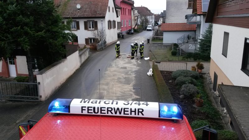 Ein 76-jährger PKW-Fahrer aus Merdingen hatte einen Termin in March-Hugstetten wahrnehmen wollen. Kurz bevor er sein Fahrziel in Hugstetten erreicht hatte, verlor er am Motor offenbar den Ölfilter und verschmutzte somit die Fahrbahn auf einer Länge von über 1.000 Metern, ca. 1,5 Meter breit, erheblich. Die nasse Witterung sorgte zusätzlich für eine Verschleppung der Verschmutzung in angrenzende Nebenstraßen. Als die Verschmutzung von Anwohnern bemerkt wurde, ergab sich ein sogenannter Arbeitsalarm für die Feuerwehr March.