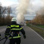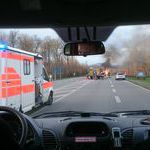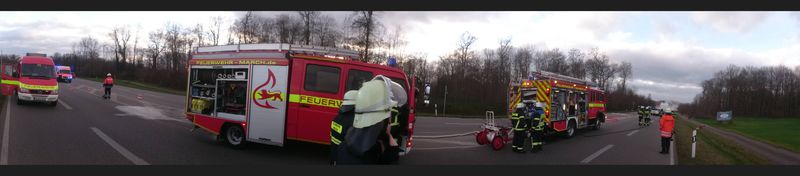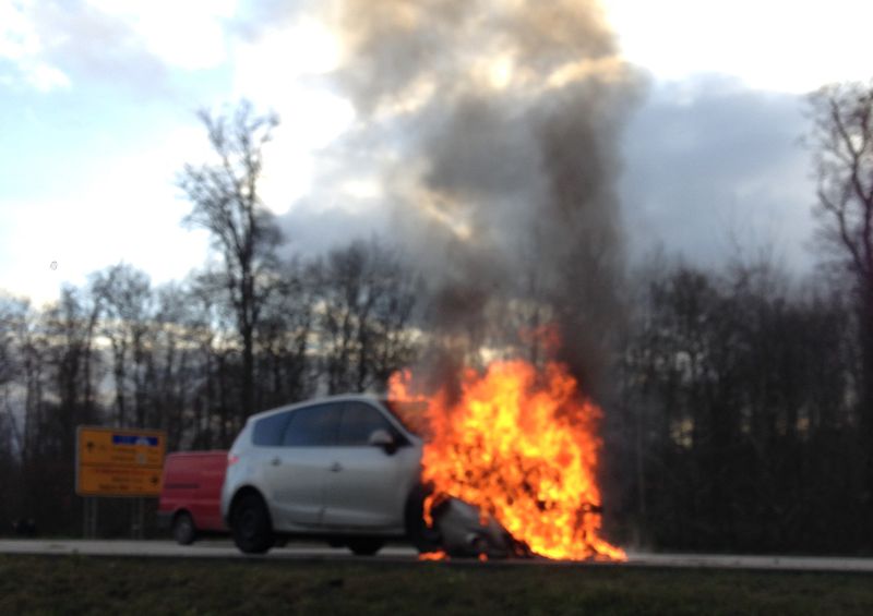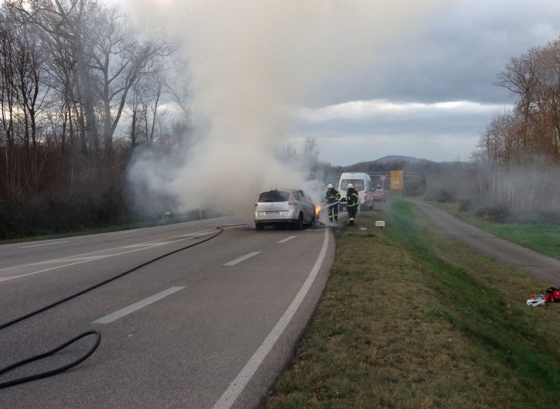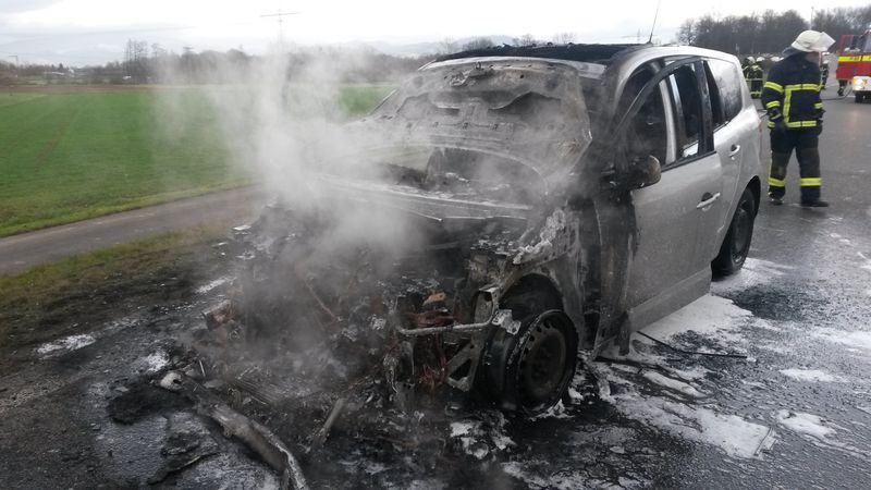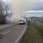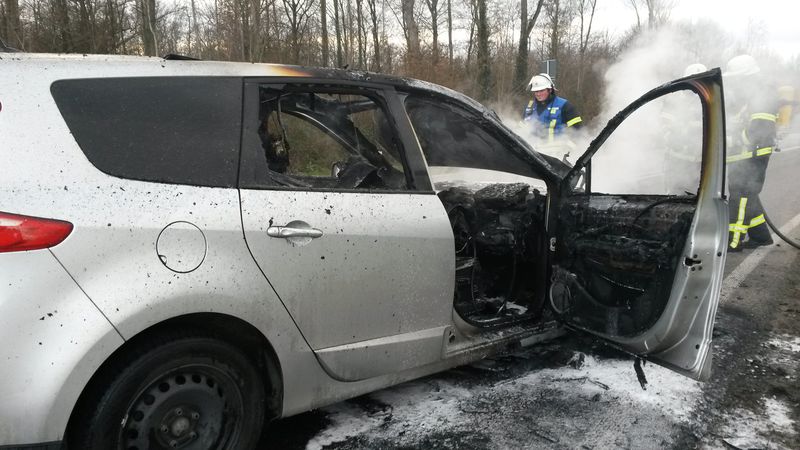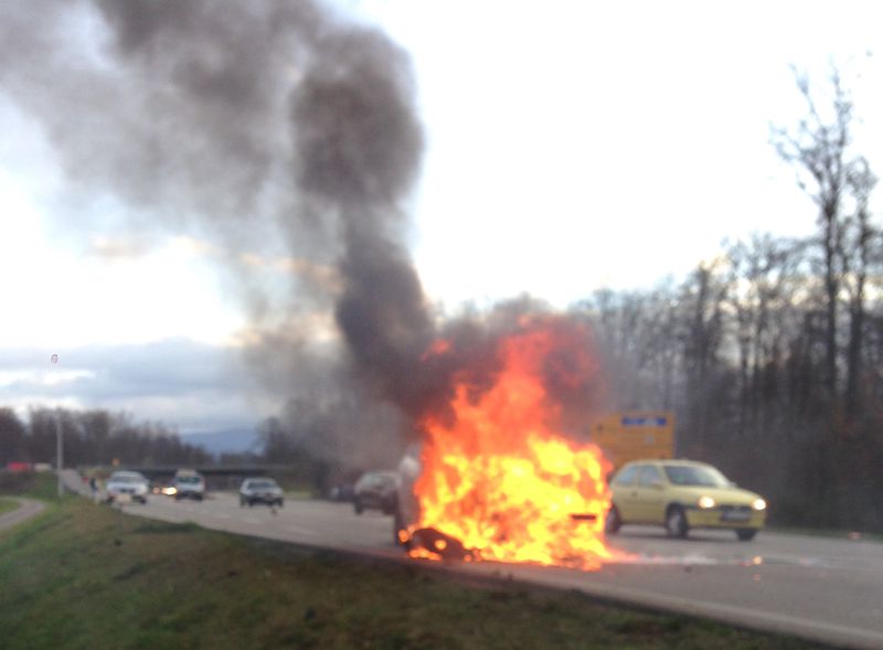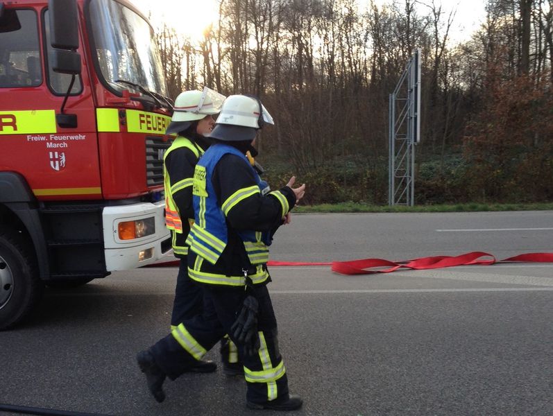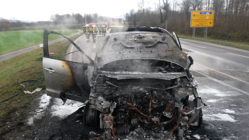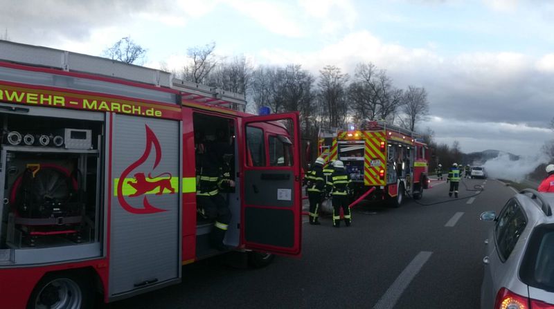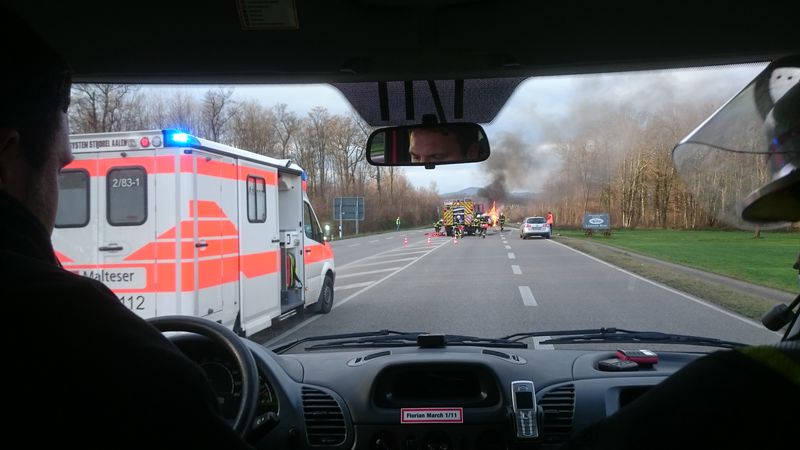 Ein 35 Jahre alter PKW-Fahrer aus Emmendingen, befuhr die B 31a von Freiburg kommend mit einem RENAULT in Richtung Gottenheim. Zwei weitere Fahrzeuge, die aus Richtung March kamen (ein AUDI und ein MERCEDES Sprinter), fädelten sich vor dem RENAULT-Fahrer auf die B 31a ein. Am Ende des Beschleunigungsstreifens kam es dann zwischen dem MERCEDES und dem RENAULT zu einem leichten Auffahrunfall, der augenscheinlich zunächst recht glimpflich ablief. Etwa 15 Minuten nach dem Zusammenstoß, die Unfallparteien warteten auf die gerufene Polizei, fing der RENAULT plötzlich zu qualmen an und fing schließlich Feuer. Der darauf erfolgte Notruf, versetzte den diensthabenden Zug 1 der Feuerwehr March in Alarm.