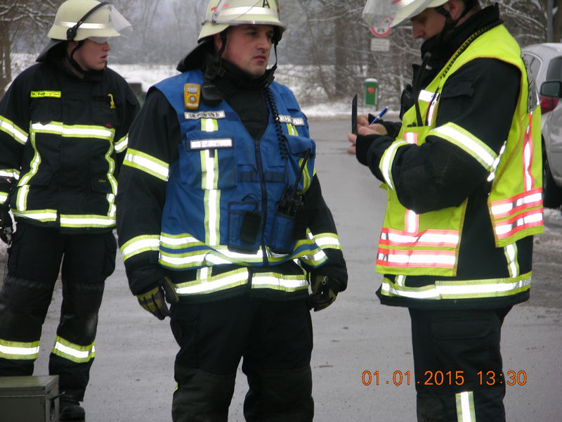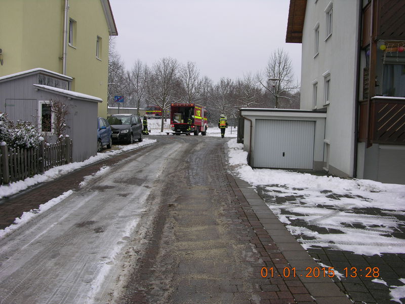 Der Einsatzleiter ging mit dem ELW auf Erkundung und konnte im Neubaugebiet von Holzhausen schließlich den Verursacher-PKW feststellen (dass der Verursacher bereits in Kontakt mit der Polizei war, war der Feuerwehr zunächst nicht bekannt).