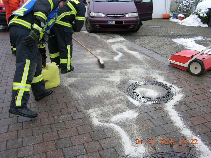 Die betroffenen Stellen wurden mit Ölbinder abgestreut. Kurz darauf traf auch schon die Spezialfirma ein und übernahm den Rest.