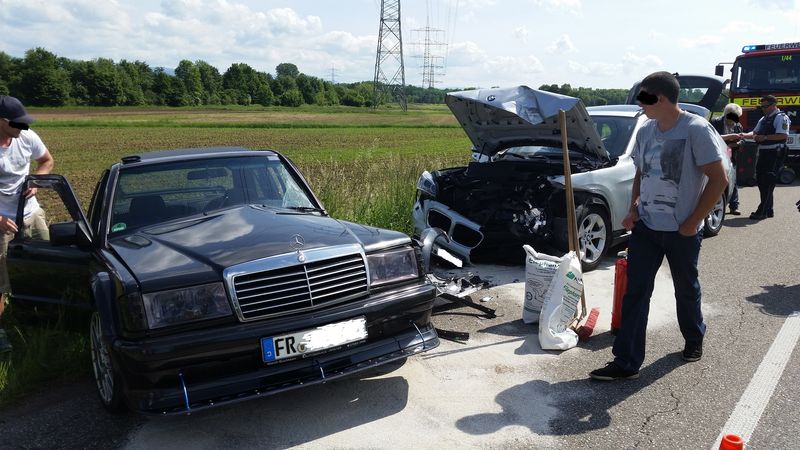 Ein Mercedes befuhr die L 116 von Eichstetten in Richtung March. In einer Rechtskurve kam er aufgrund nicht angepasster Geschwindigkeit nach links ab und kollidierte frontal mit dem entgegenkommenden BMW. Der 28-jährige Mercedesfahrer aus der Ortenau wurde verletzt und wurde zur weiteren Behandlung in die Uni-Klinik verbracht. Der ordnungsgemäß entgegenkommende BMW-Fahrer sowie die Mitfahrerin im BMW wurden leicht verletzt. Dies sorgte für einen Kleinalarm des diensthabenden Zugs 2 der Feuerwehr March, die sich gerade auf einer Maimarkt-Ausstellung in Neuershausen befand.